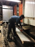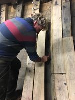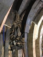 Altholz und Späne aus dem Schiff entsorgen, ist eine unendliche Aufgabe. Gerade waren 3 Eimer Späne aus dem Schiff gefegt, wird auch schon der nächste Spant im Schiff auf Maß gehobelt...