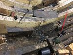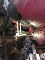 Ansonsten haben wir wieder nach besten Möglichkeiten unterstützt. Holz und Späne Schubkarren für Schubkarre entsorgen, beim Sägen der Spanten mit anpacken, Die neuen Spanten aufs und ins Schiff bringen, noch etwas Farbe vom Unterwasserschiff abbrennen...