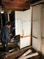 Auch die Edelstahlwannen aus dem Bad sind schon ausgebaut.