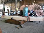 Moin, die Wassertanks waren schon ausgebaut, bevor wir in der Werft aufschlugen. Jetzt sind die Spanten hinter den Tanks zu sehen. Freitag wird von der Museumshafen-Delegation weiter entschieden. Laut der Werftmannschaft ging der Ausbau leichter als gedacht. Beim Ausbau weiterer Spanten wurden weiter marode Planken sichtbar. Vom Ballast sind einige Brocken zur Probe mit einer Konservierung gestrichen. Die Verbolzung der Spanten sieht von außen spektakulär aus. Loch an Loch und hält doch. Weiterhin jede Menge Holzmüll aus dem Schiff entsorgt. Aber über allem wacht unser tapferer Bordhund Amy.