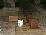 Amy wäre fast von den Werfthunden verfrühstückt worden, aber jetzt sind deren Begegnungen geregelt. Also um 14.00 Uhr auf der Werft erstes beschnuppern und verteilen der Aufgaben. Wie schon bekannt Späne wegschaffen und Einrichtung rauskloppen. Die Regale vor den Wassertanks müssen raus und gehen dabei leider zum Teil zu Bruch.