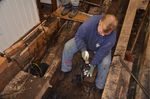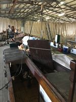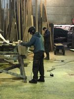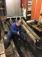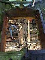 Altholz und Späne aus dem Schiff entsorgen, ist eine unendliche Aufgabe. Gerade waren 3 Eimer Späne aus dem Schiff gefegt, wird auch schon der nächste Spant im Schiff auf Maß gehobelt...
