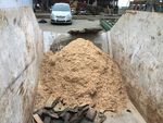 Zwischendurch bringe ich immer wieder die volle Schubkarre mit dem Holzabfall in den Container.