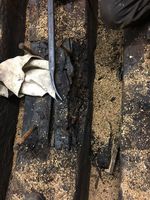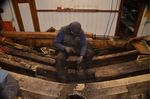 Ansonsten haben wir wieder nach besten Möglichkeiten unterstützt. Holz und Späne Schubkarren für Schubkarre entsorgen, beim Sägen der Spanten mit anpacken, Die neuen Spanten aufs und ins Schiff bringen, noch etwas Farbe vom Unterwasserschiff abbrennen...