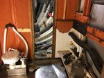 Während ich die alten Spanten rausgekloppt habe, und danach den Holzabfall aus der Halle gefahren hab, wurden an 3 weiteren neuen Spanten gearbeitet. Für den Spant unterm Salonschott musste das untere Drittel vom Schott weichen. Der Tisch ist noch drin im Salon, aber abgestützt.