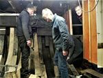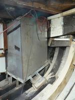 Moin, die Wassertanks waren schon ausgebaut, bevor wir in der Werft aufschlugen. Jetzt sind die Spanten hinter den Tanks zu sehen. Freitag wird von der Museumshafen-Delegation weiter entschieden. Laut der Werftmannschaft ging der Ausbau leichter als gedacht. Beim Ausbau weiterer Spanten wurden weiter marode Planken sichtbar. Vom Ballast sind einige Brocken zur Probe mit einer Konservierung gestrichen. Die Verbolzung der Spanten sieht von außen spektakulär aus. Loch an Loch und hält doch. Weiterhin jede Menge Holzmüll aus dem Schiff entsorgt. Aber über allem wacht unser tapferer Bordhund Amy.