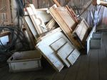 Amy wäre fast von den Werfthunden verfrühstückt worden, aber jetzt sind deren Begegnungen geregelt. Also um 14.00 Uhr auf der Werft erstes beschnuppern und verteilen der Aufgaben. Wie schon bekannt Späne wegschaffen und Einrichtung rauskloppen. Die Regale vor den Wassertanks müssen raus und gehen dabei leider zum Teil zu Bruch.