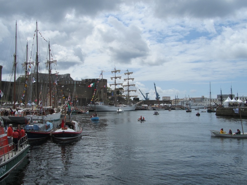 12.07.2012: In der Nacht haben wir Brest erreicht. Da uns kein Lotse mehr unseren Liegeplatz zuweisen konnte, haben wir etwas entfernt vor dem Hafen geankert. Nach dem Frühstück sind wir dann in den Hafen gefahren. Schon vor der Einfahrt wurden wir von einem Lotsenboot begrüßt und uns wurde unser Liegeplatz zugewiesen. Wie sich später herausstellen sollte, war die Information der Lotsen nicht ganz korrekt... den ersten Liegeplatz an einem Schwimmsteg mitten im Hafen haben wir nur 3 Stunden behalten, bevor wir in das korrekte Hafenbecken fahren konnten.